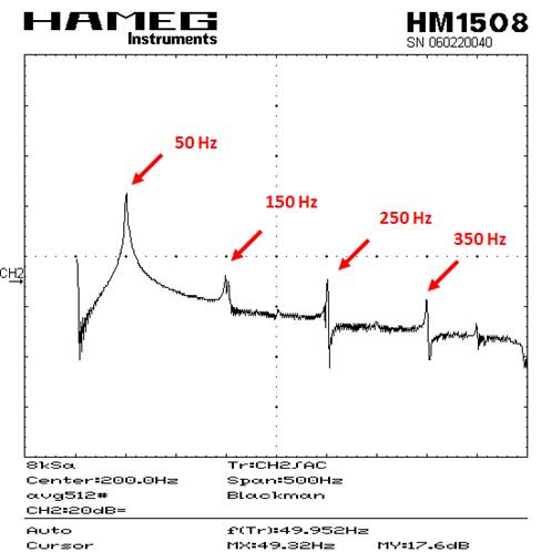 at 50 Hz. The impulse response in the time domain shows Fig. 132. The remaining signal has 500 mV (RMS). In the
