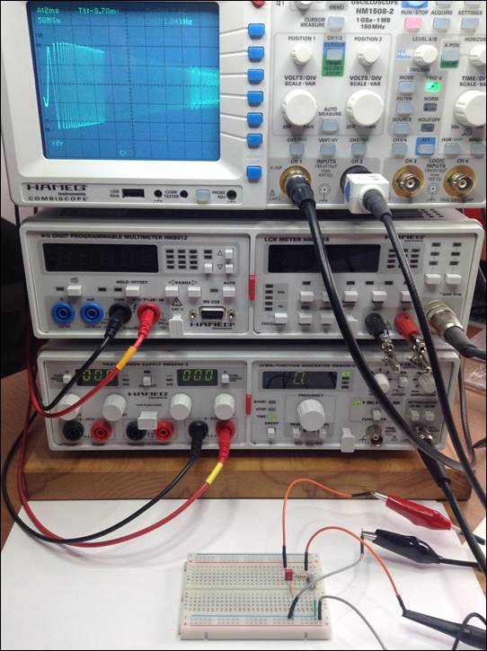 The lab setup with a breadboard is shown in Figure 2 and the impulse